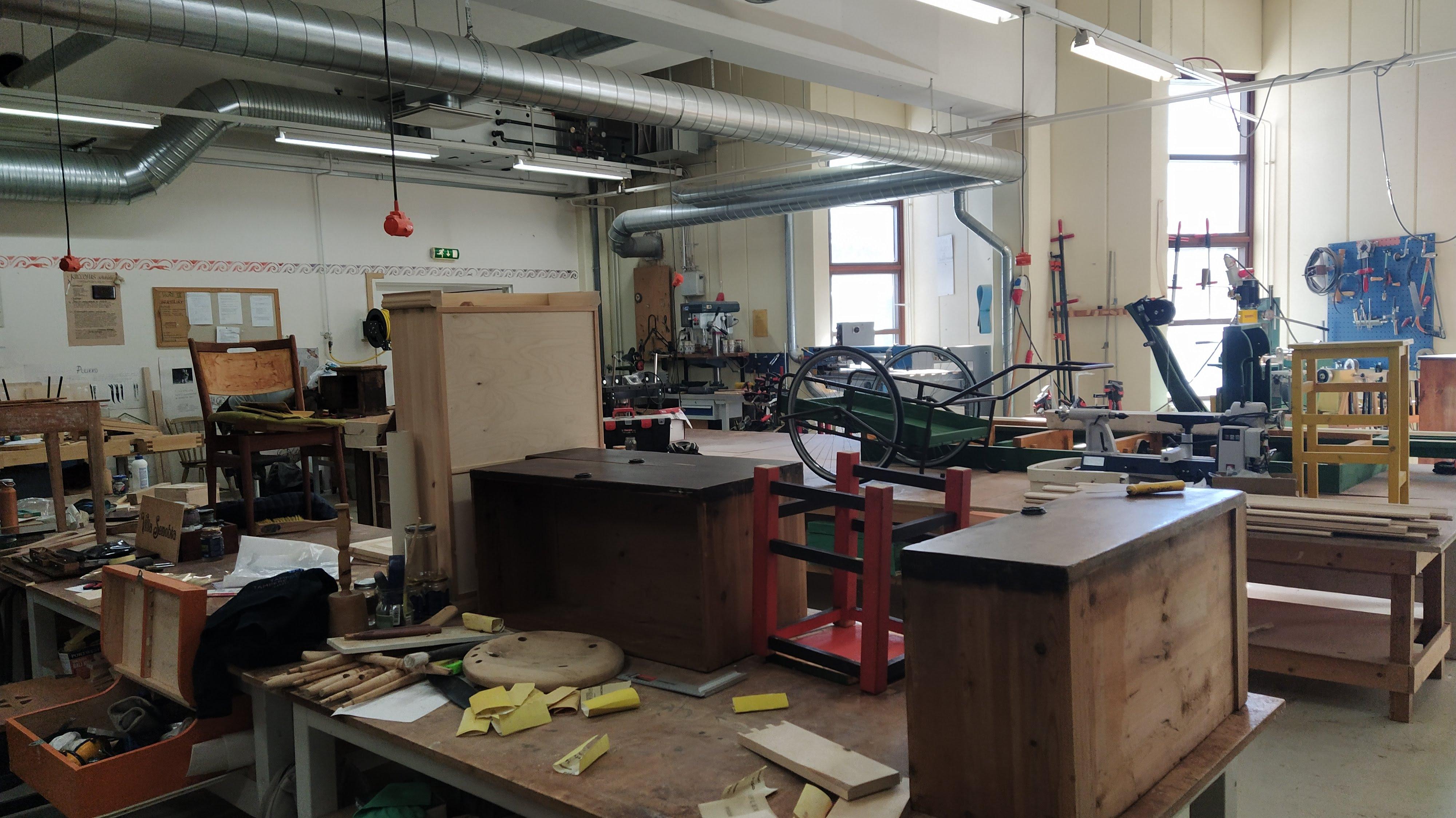 Meile tutvustati ohutusnõudeid koos koolipoolsete juhenditega ja kaasaegseid seadmeid: rihthöövel, paksushöövel, ketassaagpink, lihv- ja freesmasinad jm. Kõik vajalik oli olemas. Meile näidati ette ja õpetati, kuidas neid seadmeid kasutada ja räägiti ohutusnõuetest nende kasutamisel. Juhendaja andis esimeseks ülesandeks öölaua valmistamine. Joonis anti ette, meid jagati kaheks grupiks ning anti kätte tööülesanded. Oma projektidega tegelemisel läks aeg väga kiiresti.