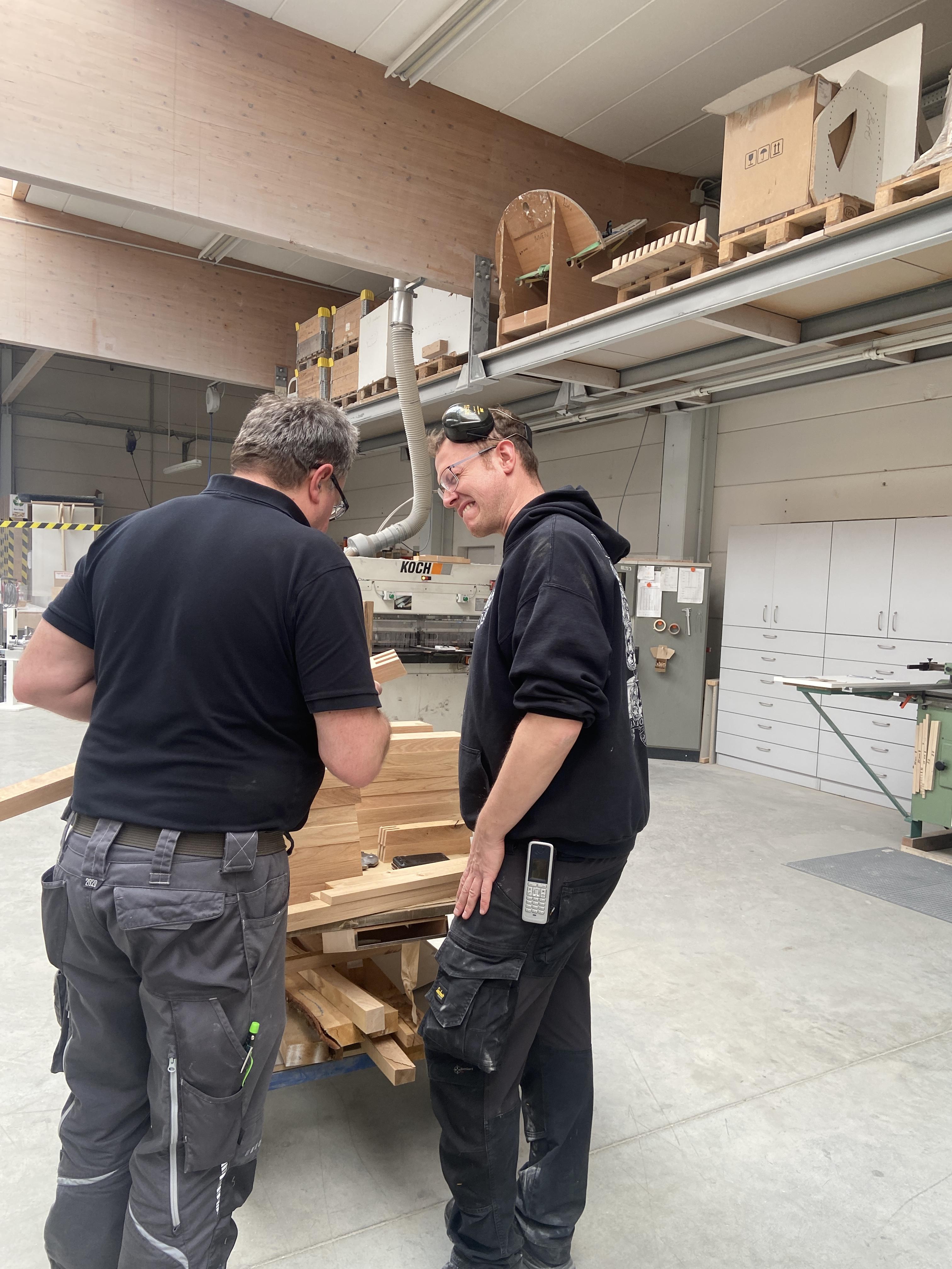 Saksamaale läksime ikkagi kogemust saama ja nägema, kuidas Saksamaal puidutöö käib. Esmalt olime praktikal suurfirmas Hasenkopfis. Seal saime olla vaid kaks ja pool päeva. Hasenkopfis õppisime natukene, kuidas töödelda corian materjali ja saime kaasa aidata erinevate tööde tegemisel. Näiteks baaritoolide valmistamisel ja toodete viimistlemisel kui ka muude väiksemate tegevustega.